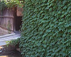 6〜7月ごろ葉の下で薄黄色の花 を咲かせる 山地の崖に這い上がり生える 紅葉も美しい 落葉する 夏の緑が美しい 建物の壁にも這い上がる 落葉つる性 古い構造物に取り付きやすい 用途:壁の緑化に利用