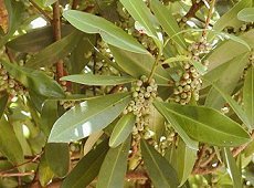 3〜4月ごろ白い4mm程度の雄花を 前年の枝に集団で咲かせる 雌雄異木 実は秋に黒紫色に熟し円形で径6 mm位 葉は互生し長楕円形で長さ5〜15 cm程度 常緑中木で樹高7mまで 海岸に近い暖地の山に生える 用途:建築材器具や薪材