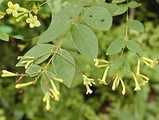7〜8月ごろ薄い黄色の小花を数 個放射状に咲かせる 花は丁子形で先は4裂(4弁)して いる 枝先に黄色の花が咲きそろうと愛 らしく美しい 葉は対生しておりガンピが互生す るのと違う 葉の長さは5cmまで 枝が垂れさがる小潅木 落葉低木で樹高1.5mまで 山地に生える 用途:紙の原料に利用
