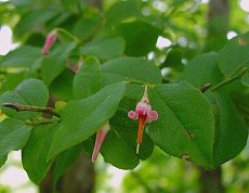 6〜7月に咲く 雑木林などの山地に生える 1度見れば忘れられない花形だ 花は4裂し外側に巻く 赤く熟す液果は丸く径7mm程度 樹高90cmまでの落葉低木 茎は緑色