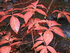 4〜5月黄色の房状の小花を垂ら せる わりに標高の高い山に生える 葉は3出複葉で対生する 小葉は3枚 葉の先端は鋸歯になる 小葉の長さ8cm程度 写真は半分位に縮小している カエデの仲間らしくない葉をして いる 秋には紅がかった赤い葉になる 落葉高木で樹高15mまで 用途: