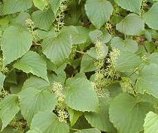 5〜6月に開花 葉と対生して花穂が出る 日当たりの良い山地に生える つる性で巻きひげがある 実は秋に藍黒色に熟し食べられる 丸い実は径7mm程度で小さい 葉は互生し丸みを帯びた三角形 大きめの鋸歯がある つる性の落葉木 用途:つる籠などの工作用