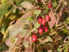 4月に開花 葉脇より薄黄色の花を数個ぶら下 げる 花は5弁 日当たりの良い山地や原野に生え る 岩山にも生える 葉は楕円で縁は円い 葉はかたまって付く 葉脇や枝から鋭いトゲがでる 秋には赤い楕円形の実をつける 名前は枝葉を煎じて洗眼薬とした 事から 樹高2mの落葉小低木 枝には縦のみぞがある 用途:庭木