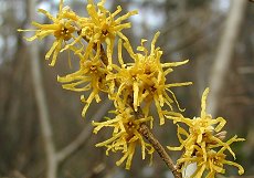 山の早春3月に一番早く花を咲か せる よく見ると一芽に三つまで花を付 けており集団化してタコ足に見え る 実際は十字の花 樹高6mまでの落葉低木 秋には黄葉する 利用方法: 庭木生け花等