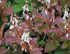 7〜10月頃開花 離弁花で花はそれぞれに3個づ つ付く 日当りの良い山の崖等に生える 南に行くと1000m級の山の岩場に ある 花の蜜は毒があると言われる 有毒植物なので注意 2mまでの落葉小低木 秋の紅葉は綺麗だ