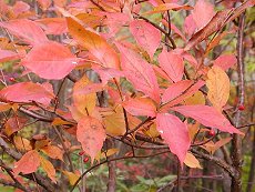 4〜5月にコデマリ状の白い花を咲 かせる 葉はバラの様だが5枚ではなく1 枚 花は4〜5mm位で小さいが集団で は4cm位になる 秋には小さい8mm大の赤い実が なりすこし甘い 枝は細い 低地の山に生える 秋には紅葉する 樹高5mまで 落葉低木 用途:器具用