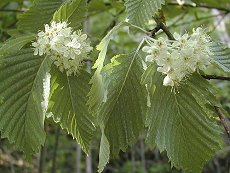 5〜6月に咲く 1cm位の5弁の花 葉裏が白い特徴があり、山では目 立つ 秋に1cm程度の大きめの赤い実が たくさんなり美しい 樹高20mまでの落葉高木 名前が似ていて花が大きい大うら じろの木を見る 用途:器具用