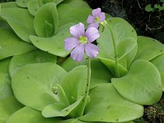 2月に温室で咲いていた 花色はピンク 花径3cm程度 花はプリムラにも似ている 花に距があり花はスミレに似る 葉に粘性があり虫がひっついて養 分になる 葉の黒い部分は虫 草丈は花を入れて10cm程度 冬は温室で栽培する 日本のムシトリスミレは寒地性で 高山の岩場に自生する