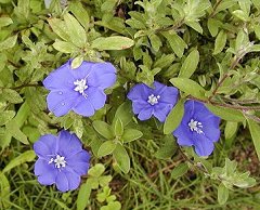 みともり 私の花図鑑 エボルブルス(アメリカンブルー) 戻る 多年草【ひるがお科エボルブルス属】 分布 ブラジル