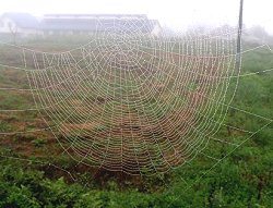 | 秋になると蜘蛛たちが 成長してくるのか、 庭の木々に蜘蛛の巣 が沢山かかって、 この重い霧をとらえて 糸が白く光って見える。 その朝の薄明かりの 中で花々が浮かび上 がっている。 |