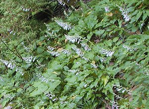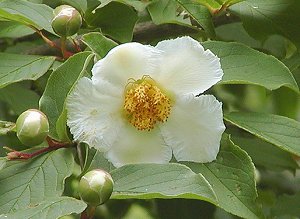 水曜日 (曇り時々晴れ) 梅雨明け 今日も民家の整備に出かけて来た。 西中国山地は雲っていてそんなに暑くはない。 でも働いていると顔から汗が噴出してくる。 今年は春からずっと屋外の作業に週2回程度出かけているので、暑い夏でもなんとか動ける。 今の健康に感謝である。 ただ食べ過ぎだけはいけない。 つい動くと食べ過ぎて調子を落としてしまう。 私の悪い癖である。 昨日は山口の山間部に鮎を食べに出かけて来た。 案の定安くて美味しい天然の鮎にありつけた。 そこは清流が多くてどこでも鮎料理が食べられる。 山の中で遠くて不便ではあるが、これも私の年中行事の一つになってしまった。 そこの渓流の岩場には大葉ギボウシの薄青い花が群れて満開であった。 それと走っていて山の中の稲田と里山が緑に輝いて、ことのほか美しい。 これも日本の美の一つであろうと思う。 渓流の大葉ぎぼうし ![]() 夏つばき 花蜘蛛がオシベの上にいる 今山では糊空木や岩がらみの白い花、マタタビの白い葉が濃い緑の中で目立つ。 それと山の道の街路樹に夏椿が植えてあるが、またこれも白い花を見事に咲かせている。 なかなか自然の木は見られないが、少し山に入り探すとこの辺りでは大木も見られる。 それとネムの木の赤い花が一斉に咲きだしている。 これが中国自動車道の周辺で良く見られる。 中国自動車道は休日割引が無くなり一段と通行量が減ってしまった。 もう国道にしてフリーのハイウェイにしたほうが良さそうに思えた。 そうすればもっと地域振興も計れるのではと推測する。 花の里は今年の梅雨の長雨で花たちが伸びすぎ、繁茂しすぎて通路も歩けない。 花笠菊は2mにもなって、下からその黄色い花を私は見上げている始末。 また半夏生はこれも葉を精一杯大きくして茂り、白い葉と紐のような花をつけている。 元来湿気の好きな野草であるので余計に茂っている。 この辺りの渓流はどこも水が満杯のようでざわざわと大きな音を立てて流れている。 源氏蛍もそれに負けないように夜は沢山出現して高めに樹上を舞って光っている。 森の湿地では姫蛍が少しではあるがチカチカと光る。 今の花の里の咲いている花は花魁草、内田ヒマワリ、桔梗、百合、アリストロメリア クガイ草、藪甘草、ハーブの西洋弟切、ギボウシ類等が咲いている。 山の野草園は忙しいので見に行ってないが、鳥足升麻と岡虎の尾が最盛期 で花盛りだろうなと思う。 トンボも出現してくれたので蚊やぶよを食べてくれるので山にも出かけやすい。 それと今はヒグラシが元気に鳴いてくれるので夕方は気分的にも涼しく感じられて 高原の良さを教えてくれている。 今山は一度に夏がやってきた感じである。 日記前のページへ 日記次のページ 日記の最初目次ページ 花図鑑ホーム |