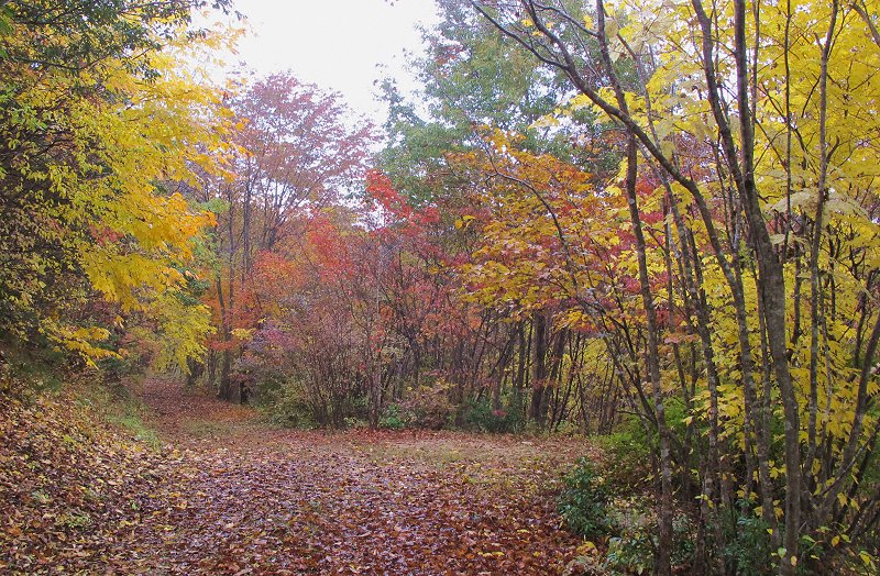 月曜日 (晴れ) 平茸 今朝ようやく雨があがったので山に向かった。 連休最後の日でまだ空は曇っている。 11時頃から山の作業を始めた。 時々弱い秋の太陽が雲間から射して来ている。 林の中の小木は雪で倒れる事が多い。 倒れた木を伐り小さくして地面に積んで置く。 昔なら焚き付けの燃料として持ち帰るのであろうが、残念な事に薪ストーブが無いので無理。 小枝は硬くてなかなか山の地面に積んでいても腐らない。 小さくても年数をかけて育っているのだろう。 以前に切った株の根元にキノコが群れて生えていた。 これはムキタケかなと思いよく見るとそれはヒラタケであった。 ここの山では2回目の遭遇になる。 不思議なもので以前生えていた油シメジや桜シメジ、霜降りシメジは最近とんとお目にかかれない。 異常気象が影響しているのかも。 ![]() 山は全山紅葉となり、今年のモミジ等はことの他見事に赤くなった。 この夏は乾燥し今年の紅葉は駄目かと思っていたが、最近雨が良く降り元気回復したのだろう。 赤、オレンジ、黄、赤茶、緑色とまるで錦模様である。 地面は湿気を帯びていて焚火はむつかしい。 残念ながら美味しい焼き芋が出来ない。 時折空が曇り時雨(しぐれ)が降ってくる。 風が起こると紅葉した木の葉がその風に舞い沢山落ちてくる。 落ち葉の子守唄では無いが風情がある。 私は一時車に避難。 時雨に濡れて輝く紅葉の山を眺めながら一休み出来て快適ではあった。 北から吹く風は体に冷たい。 地元の人に聞くともう三度も霜が降ったらしい。 紅葉が一度に来たはずである。 時雨が収まるとまた作業に入る。 太陽がまた顔を覗かせる。 時折小鳥の集団が廻って来て可愛い姿を見せて呉れた。 ここが野鳥の天国になれば嬉しいのだがと思う。 木の成長と共に野鳥も一段と増し、姿を見ても、どの鳥やら判別がつかなくなってきた。 3時過ぎからは時雨が強く吹き、それを区切りと花の里へ避難し、のんびり入浴した一日であった。 紅葉の 色をより増す しぐれかな 山帰来 |