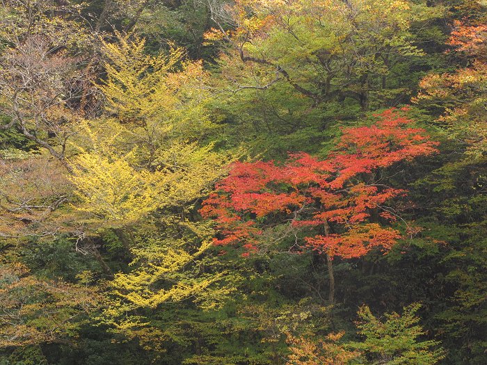 月曜日 (晴れ) 山の紅葉 昨日は県北の別荘の案内に出かけていた。 行く道で通過するダム湖の周りや渓谷は木々が見事に紅葉しており綺麗。 ![]() ![]() 山里も野原はススキの白い穂や背高泡立草の黄色の花の群落があったりして 林の紅葉と合わせて秋らしく風情があった。 秋の太陽と雨の影響であろうか草の緑も美しい。 そこの別荘地には大きな夏椿の木があり、下にはその子供たちが芽生えて小株になっている。 小さな株ではあるがそれを一本抜いて、今日は山の別荘地の野草園に植えていた。 また野草の千本槍も種を付けた株があり、2本ほど持ち帰って同様に野草園に植えておいた。 野草園は青紫色の紺菊が寒そうに群がって咲いていて初冬も近い。 ![]() 今日の山の別荘地は昨夜の雨が良かったのかここも全体が見事に紅葉している。 黄色が多めであるが、色が鮮明で太陽に映えて素晴らしかった。 ![]() 道の落ち葉は多すぎて掃除に手を出せない位なのでほっておいた。 またこの道にはコナラやミズナラの実が沢山落ちていてびっくりする位。 なんとかうまい調理方法を考えて食べると美味しいのであろうが無理か。 そのうち動物や野鳥たちがこれを食べ尽くすであろうが。 そのかわり動物たちが食べ残した芝栗の小さな実を十数個拾って帰った。 これを電子レンジで一分位加熱するとなんとか美味しく食べられるのだ。 今日もキノコは生えていなくて残念。 美味しいスキ焼は残念ながら食べられそうもない。 今日は北風が吹いて少し寒いので、南側の谷で落ちた枯れ枝等を集めて燃やしていた。 紅葉と焚火の炎の色も赤くて暖かく気持ちが良い。 落ち葉を燃やした白い煙も嗅ぐとなにかほっとする感じである。 小鳥の大集団が木の上を通過すると可愛い声で賑やかである。 もう鷹は南へ飛んで行ったのか姿を見せないのでなにか安心。 この小さな鳥たちは雪が降ったらやはり南に移動するのであろうとか思って見ていた。 数日前に仕事で山口県の周防大島に行ったが、あちらはヒヨドリや他の大きめの鳥たちの声で森は賑やかであった。 今年はなにか異常気象で、野鳥も色々な種類が見られて名前もわからない鳥が色々。 植物たちも変化の多い年ではあった。 花の里ではヒマラヤ雪の下がもう小さな花をつけていた。 早春に咲く花なのに不思議。 最近パソコンカラオケでバニー マニローのウェン オクトーバー ゴーを歌うのであるが丁度季節にぴったりである。 こんな歌を好きになるのも年のせいか? 本人の歌 木たちの、この一年を清算する見事な紅葉が終わり、10月が去って行くとなにか寂しい気が・・・ 山から帰る時間の気温は8度であった。 雪も近い。 日記前のページへ 日記次のページへ 日記の最初の目次ページへ 花図鑑ホーム |
