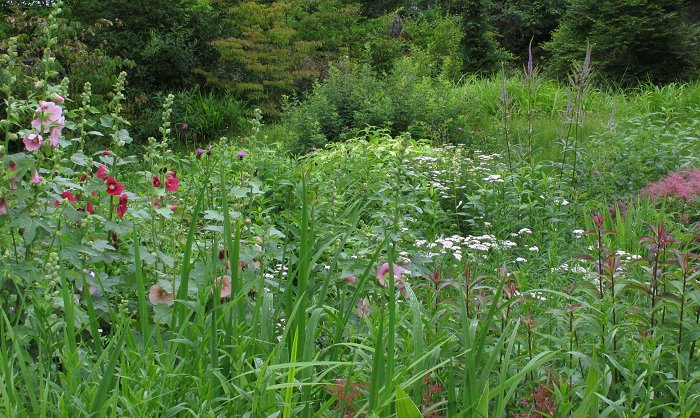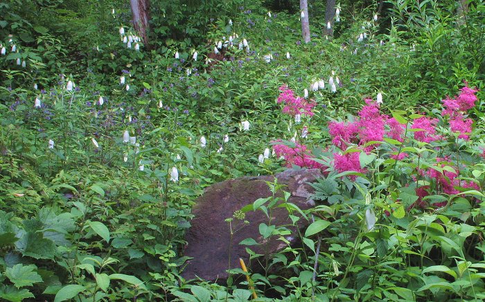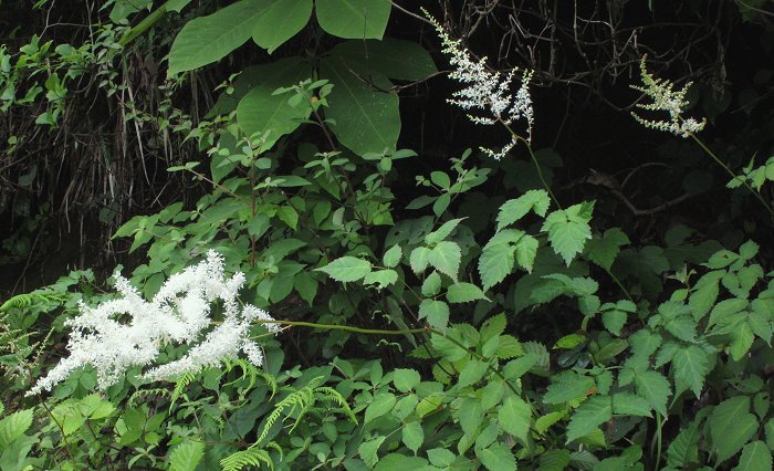 日曜日 (晴れ) ようやくに 背の痛みが薄れてようやく動けられるようになった。 でも軽い動きしか出来ず背中の筋肉は使えない。 使うとそこがピリッと痛いから。 それでも昨日今日と2回吉和の花の里と山の別荘地に行った。 花の里は京鹿の子は終わってノコギリ草やタチアオイ、シャスターデージー、クガイソウ、宿根ナデシコ、クレマチス 、シモツケ、アザミ等が咲いていた。 ![]() 花の里の花たち ほぼ1月ほっておいたのと、この雨続きで花壇は茂りに茂り、また雑草も交じり大賑わい。 花壇の中の樹木も大いに茂って宿根草たちに陽が当たりにくい位である。 まあこれからの真夏の太陽を防ぐには今位が良いかもとは思う。 山の別荘地に行くと道の両側は雑草が伸びて茂り車が走りにくい位であった。 また私の体は本格的に回復していないので見ないふりをして野草園に行った。 そこは一月前とは大違いで歩道の周りはウツボグサやホタルブクロの花が埋め尽くされていて歩けもしない。 ![]() うつぼ草と蛍袋と京鹿の子 ![]() うつぼ草 それで別の歩道を仮に草刈りして足を踏み入れた。 ここではまだ京鹿の子が濃いピンク色をして満開で綺麗。 また道の斜面や野草園の中に鳥足升麻の白い穂状の花が沢山咲いていた。 匂いをかぐとほんのりと良い香りがした。 ![]() 鳥足升麻 キリン草の黄色い花はぼちぼちと開花。 野草園から道の上の部分には山紫陽花が満開で梅雨らしい。 ![]() 他の花はこれからという状態でどれもこの雨で良く育っていた。 冬に倒れたオノエヤナギの枝を歩道と栽培地の境に突き刺して動物よけにしていたら、不思議?芽を伸ばしていた。 道の木の茂みの葉にはあちこちと蛾が止まっていて見ても美しい。 大きいのやら小さいのやら様々で面白く興味をひいた。 野鳥は気持ちが良いのか色々と鳴いていた。 クロツグミも本格的に鳴いている。 ウグイスやホトトトギスも。 やはり自然の良さは様々の生き物や植物がその特性を発揮して見せて呉れる事かなと思った。 帰りに花の里のラドンの湯に入るとなにか体調が戻る気がして気持ちも良かった。 気温は前の日は13度位でコタツを使用したが今日は23度位で丁度良い感じであった。 帰りの太陽が沈んだ位の渓流には茶色のカワゲラの成虫が沢山舞っていた。 風も無いし気温も丁度良いのであろう。 ホタル見物の人もぼちぼち渓流沿いに来ていた。 そうそう山は日向水木の白い花やマタタビの白い葉が見える位で緑一杯の状況であった。 日記前のページへ 日記次のページへ 日記の最初の目次ページへ 花図鑑ホーム |