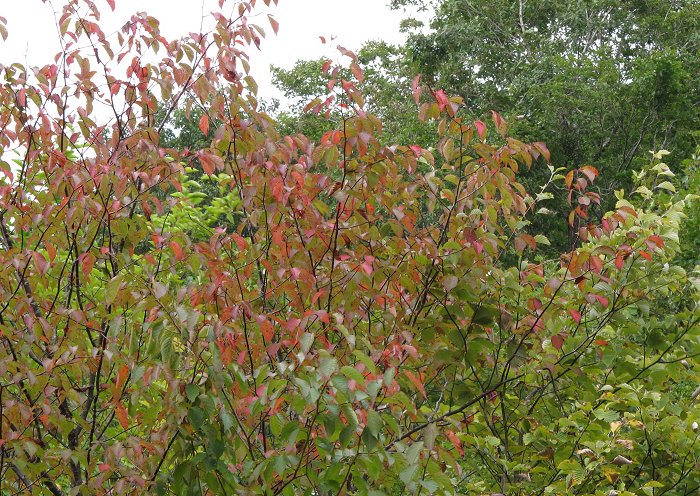 日曜日 (快晴) 野草園の初秋 今日はようやく快晴となった。 3日に1回は必ず雨が降るといった今年の山の野草園である。 異常気象とあいまって今年は山も野草園も、花の里も手入れには泣かされた。 昨日は曇りでなんとか山の進入路の草刈り等をしていたのだが、夜の雨が明けると今朝はこの見事な空。 いつものように昼前には山の現地に着いた。 季節の変化は早いものでここの日当たりの良い場所ではもう山桜等の葉が赤く色づき始めている。 ![]() 緑の林の中にはあちこちにガマズミ等の赤い実が見られる。 野草園では間に生えている木が育ちすぎて日当りを悪くしているので、邪魔になる木を間引きをしていた。 それは伸び伸び育っていて背も高いし枝を良く広げている。 切るのは可哀そうな気もするのだが。 それの整理には手間が沢山かかるが我慢して動いていた。 疲れて休憩していたが、野草園の上部に田舎菊の集団が白い花を咲かせていて疲れた体と心をやすらげてくれる。 山の気温はようやく下がって秋の感じで空を見ても鮮明なスカイブルーで真白な雲もあり爽やかである。 野草園の内部を眺め見ると黄花秋桐の鮮明な黄色の花が目立って見える。 それと隅のほうに水引の紅い花の集団も見える。 それではと野草園の中に入って野草を見ると、まず更科升麻の白い長い穂の花が見えた。 咲き始めであるが香りをかいで見ると柔らかい甘い香りがして素敵。 また大葉升麻の白い花も咲き始めていた。 まだヒゴタイの花も健在。 それとツルケマンの黄色の花がこの雨で繁殖してツルを伸ばしてあちこちに咲いている。 結構抜いていたのだがそれでも数を増やしている。 エゴノキの下に植えている松風草も元気に白い小さな花を散らした感じで咲いている。 渓流側ではアケボノソウがすらりと茎を直立させて頭部に白い桔梗を小さくしたような花を揃えて咲いている。 おなじく渓流そばには釣舟草が赤紫の濃い色の花を今年は大きめに咲かせている。 ![]() また私には雑草なのであるがアカネが生き残って蔓を伸ばし茂り小さな緑の花を沢山咲かせている。 これで実をつけてまた来年沢山芽を出して来るのであろう。 この花は茎にトゲがあり手入れをしていて困る野草である。 早めに取り除かないといけないのだが。 咲いているとなにか可愛い。 ワレモコウはパラパラで今年はなにか寂しい。 日当りが悪いのが響いたのかも。 小花のワレモコウは猪に地面をかき回されて生き残ってはいるが花をつけて呉れない。 忙しいなかではあるが切った木の棒を泥の地面に沢山打ち込んで猪避けとしてやった。 オタカラコウも渓流の下部に黄色の花を咲かせて今年は綺麗であった。 あれやこれやしているうちにもう5時になったので花の里に帰ったが、ここでもまた花の手入れを少ししていた。 花の里は白萩と山萩、秋明菊が満開であった。 オミナエシの黄色い花もまだ健在。 今日は秋の花がすっきり綺麗に咲いて呉れて、手入れの苦労が報われた気がしたのである。 秋はこれからなので楽しみである。 日記前のページへ 日記次のページへ 日記の最初の目次ページへ 花図鑑ホーム |