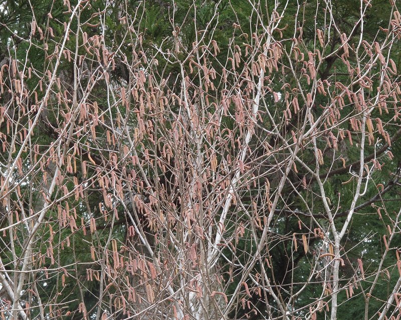 土曜日 (晴) つのはしばみ 昨日は北からの寒風が吹いて春模様を感じさせない寒い日であった。 外に出るのも気が進まないので事務所で内業をしていた。 今日は朝寒いけど寒風は少なくなり空は晴れて気持ちが良い。 それでは山の別荘地の整備に行って見ようと思い出かけた。 途中の山里はまだ梅が咲いているがもう終わりみたい。 山道の渓流ではもう高野水木の黄色い花の集団が見事に花を咲かせている。 また道の崖の斜面の日当たりの良い場所では檀黄梅が梅みたいに黄色な花を咲かせている。 いよいよ早春の本番。 花の里ではもうクロッカスは終わりクリスマスローズが満開。 クリスマスローズの白花 ![]() それとチオノドクサの青や白やピンクの花が可愛くつつましく咲いている。 昼食まで花の里の花壇の落ち葉整理をしていた。 少ししただけで大分綺麗に見える。 昼ごろであるがモグラのせいか地面の浮いた一部分はまだ凍っていて硬い。 今朝の寒波はきつかったのであろう。 それでもここの宿根草たちは元気。 さすがに寒地に強い花たちではある。 周りの落葉樹には小鳥が少し集まって飛んでいる。 中に白黒のシジュガラが目立つ。 巣作りでもしているのだろう。 もう野鳥たちは春の繁殖シーズンに入っている。 昼からは山の別荘地の整備に向かった。 早速道のサイドに集まって落ちている落ち葉をエンジンのブロワーで吹き飛ばす。 しっかり木の下まで吹き飛ばさないと、イノシシたちが来て牙でその辺りを掘り返し山ミミズを探して道を壊すのである。 頑張って綺麗に吹き飛ばしていた。 また藤等が絡まった落葉樹等は雪の重みであろうか折れかかっている。 その藤の蔓を急な斜面に登り切っていた。 そんなところは普段入らない所で自然に蔓が繁殖しているのである。 また野草園の入口道路の砂利敷きの道もブロアーで落ち葉を吹き飛ばした。 するとその道も見事に綺麗になる。 さすがに石油パワーは強い。 これを充電器などのマシーン等でするのは無理であろう。 石油に感謝である。 最近は自然エネルギーの仕事にも関わっている私であるが、やはり石油も大事である。 山を眺めると木々の去年の清算は寒風が吹いて見事にされている。 そんな眺めの良い山にはそろそろ白文字達の早春の黄色い花も見られる。 キツツキのトントンと言う響きも谷間から響いてくる。 気温は12度位で動いても楽。 落葉した灌木の中で目立つのはつのはしばみの垂れた雄花である。 3m位の茂った枝から見事に花を垂れている。 今年は特に目立つのだ。 実は食べられるようだが試食した事は無い。 下は つのはしばみ ![]() 帰りに少し野草園の通路の落ち葉を清掃していた。 しっかり作業して時間を見るともう5時過ぎている。 でも辺りはまだ明るい。 春分を過ぎていよいよ別荘のシーズンも到来である。 日記前のページへ 日記次のページへ 日記の最初の目次ページへ 花図鑑ホーム |