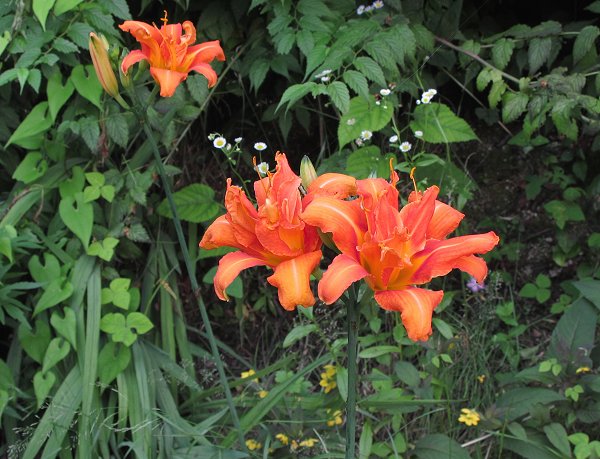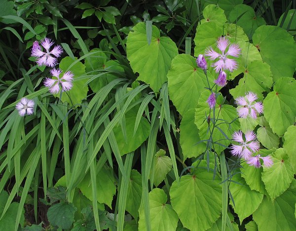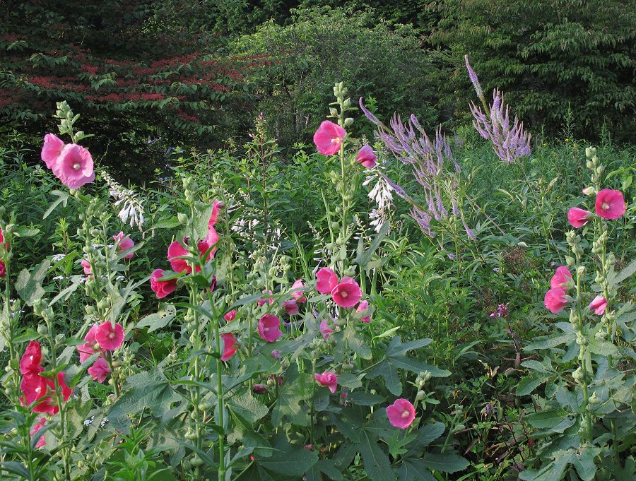 金曜日 (雨) 雨の歌 今日は雨が激しく降り、窓から外を見るとまるで窓のガラスに雨の水滴が沢山ついてマダラ模様。 見ていてそれは人の涙雨見たいだと思った。 人には嬉しくても淋しくても涙が出るものではある。 私には思い出でも出てくる事もある。 外は緑一杯であるがそれがぼやけて見える。 見たくないものが消えて見え、ぼやけた緑が美しい。 雨の歌は数多くあり、しっとりしていてこんな時に聞くとなにか落ち着く。 バーブラ ストレイザンドのアルバムにウェットという素晴らしいCDがあったがその中にウェットとかキッス ミー イン ザ レイン、ナイヤガラ等 があって素敵だった。 それは販売されたのが1979年で、もう37年も経っているのに私の心では色褪せもしていない。 音楽と言うものは人が死ぬまで楽しめるものではある。 昨日の朝は曇りだったが気温が高くて嫌な日だと思い、それでは涼しい所へ行こうと吉和の山の別荘地に出かけた。 吉和近くの道ぎわにはもう糊空木が薄クリーム色の花を木の枝先一杯に咲かせている。 今年は咲き方がなにか美しい。 また川沿いにはネムの木のピンクの花が豪華に賑やかに咲いている。 といってもこの花は夕方が見ごろで、帰りには満開に咲いていた。 もう一つ夏椿も満開で白い花を道に沢山落としていた。 夕方のネムの花 一夜だけの花 ![]() 花の里では桔梗や河原撫子やヒヨドリ草が咲き始め、またオミナエシも茎の先に蕾をふくらませて秋の七草の揃いそうな雰囲気。 でも萩や葛やススキはまだまだではある。 花の里の草原でもあちこち花が揃い咲き始めて大分賑やかになった。 草原中に増えた小鬼百合が咲くと豪華なのであるがこれはまだ。 少しここの道や草原の整備をして山の別荘地に向かった。 花の里の河原撫子 ![]() 花の里のギボウシ ![]() 花の里のヤブカンゾウ ![]() 花の里の花壇 メインはホリホック 紫色はクガイソウ ![]() 昼から山の別荘地に行き入口の門回りの道路の草刈りを始めた。 下部は数日前に綺麗に刈っていた。 草刈りと言っても道路沿いには低木の新枝も交じっていて、今年の草や木の伸びはすごく連年の倍以上である。 これでは夏に台風が来て強風が吹くと枝折れやら倒木があって大変かなと思う。 道路沿いの草刈りはビニールの紐で最近はしており若木の新枝を切ると紐は切れやすい。 度々に紐の延長作業をしないといけない。 それと刈った草や木の新枝をかき集めてこれを処理しないといけないし、また残ったものをブロワーで吹き飛ばし道を綺麗にする。 側溝に落ちたものは金属の熊手でかき集めてこれも処分。 腰を曲げての作業なので結構疲れる。 疲れれば木陰の涼しいアスファルト上に腰を下ろし冷たい水を飲み、変る季節の自然を眺めながら小鳥たちの囀りを聞き休む。 もう時々ヒグラシの鳴き声がまるで漣(さざなみ)のようにして来る事もある。 気温は26〜27度位で事務所のある町の気温が32度位あるのでまだ外の作業では楽である。 汗をぬぐい体温が冷えるとまた作業。 私はこの夏の運動ならぬ作業で健康に若く体を鍛えているのだろうと思う。 好きな事をして生きていくのは嬉しい事ではある。 今日はこの辺りから離れられずに残念ながら野草園には行けなかつた。 今は夏に涼しい場所で勝手に自分のやりたいことを出来るのが一番と思っている。 暑い夏は風の通る涼しい場所でこの林(森)の手入れをするのが好きになっている。 たまに強烈な暑さが来ると近くの渓流に行き水浴をするのが良い。 西中国山地の渓流では水温が低いので10分も水につかっているとすぐに出たくなる涼しさである。 今この山ではもう木の花のりょうぶが白い花を咲かせ始めている。 そうそう花の里では私の好きなクサギの花が咲き始めていた。 日記前のページへ 日記次のページへ 日記の最初の目次ページへ 花図鑑ホーム |