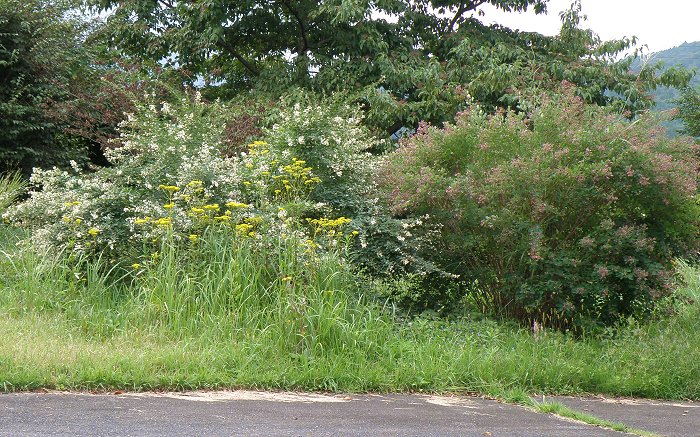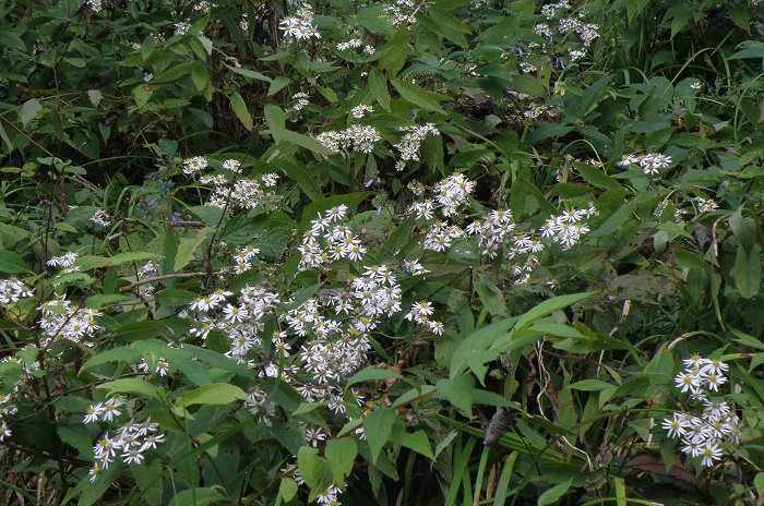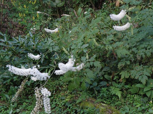 金曜日 (曇りのち晴) 異常気象 このところまた秋の停滞前線と台風の影響で雨続き。 気分まで落ち込む感じ。 景気も天気と同じで停滞していて活気がない。 マイナス金利と言うが中小企業に貸し出されると結構高金利。 こんな事をしているから中々景気も天気と同じでさっぱり盛り上がらない。 政府は掛け声だけで本当に景気を下支えする政策は皆無である。 掛け声政権ではある。 今日はようやく雨があがり晴れそうな感じだ。 久しぶりに花の里と山の別荘地に出かけた。 やはり、どよんとした空模様では無くて雲の隙間から青い空が見える。 窓を開けて走ると少し寒い位だ。 何処も土手には彼岸花の花が勢ぞろいで緑の中に赤い模様を描き出している。 気持ちよく花の里についた。 入口の秋海棠は相変わらず綺麗に咲いている。 花の里入口の秋海棠 大分増えて来た ![]() 花の里の花壇には野草のツルケマンやイヌタデが混じりこんで盛大に咲いており、栽培している宿根草たちはパラパラ。 野草花壇化してしまっている。 シュウメイギクと白い斑入り葉のシモバシラが咲いている位で他の宿根草たちはまるで花を咲かせない。 今年の夏の暑さと乾燥とまたそのあとの多雨で痛めつけられている。 しょうがないので草刈り機で全体の上部を刈り込んで整理してしまった。 まあそれでなんとかスッキリしている。 草原に植えている萩たちは元気で綺麗に花を咲かせていた。 白萩と野萩 黄色はオミナエシ ![]() 庭木等の樹木の下の枝を切り落として眺めを良くしてまた花壇への採光や通風を計った。 これで何とか花壇らしくはなったのだが。 食事をして山の別荘地に向かった。 ここでは野鳥たちが色々と鳴いて賑やか。 野鳥は木の実が豊富なのと虫たちが大量発生しているのでここに長く滞在しているし、おまけに小動物は栗や ドングリの実が地面に沢山落ちていて食べ物には困らないのであろう。 相変わらず道沿いの樹木の間引きと眺めに邪魔な枝を落として、ここも採光と通風を計っていた。 今日は気温も低くて汗があまり出ない。 でも動くと額から目に汗が落ちて結構疲れる。 野草園に行くとびっくりさせられる感じで花が一斉に咲いている。 目立つのは晒菜升麻と大葉升麻の白い花穂である。 晒菜升麻 花が重いのか穂が倒れている ![]() それと道の上部の林の中の田舎菊の白い花たち。 田舎菊の集団 強健で花も綺麗 写真にない嫁菜は薄青色 ![]() あと咲いているのは黄花秋桐、松風草、小塩竃、秋丁字、南部薊、水引、釣舟草、嫁菜等である。 黄花秋桐 日当たりが悪かったのか花色が白い ![]() 秋の野草は長い雨で元気が出たのか大賑わいである。 今年の花たちは異常気象で大変であったと思った。 まあ人もそうである。 普通の秋の気候が欲しい今の心境だ。 もう山桜の葉は少し赤味があり木の葉も少し薄茶色を帯びて秋の支度中か? 本格的な秋が楽しみ。 キノコはもう沢山地面から色々と出ており、また杉の切り株から白い杉平茸も沢山出ていた。 そうそう。今日も山法師の赤い実を食べていたが甘味が少ない。 小鳥も味がもう一つなのであまり食べないのか?。 私はなにかこの実に健康に良い成分が入っている事を祈っている。 追加で 翌日に山に行き旧の野草園に行くと、ここには黄色の秋の麒麟草、紫の鳥兜、白の曙草 が咲いており、渓流の岩に大文字草が小さな白い花をつけていた。 また林の下の雑木に蔓人参(ジイソブ)が桔梗風の白い花を咲かせていた。 秋の麒麟草の色は鮮明な黄色で美しかった。 これからは秋の野草の花を訪ねて山や草原のトレッキングが楽しみだ。 日記前のページへ 日記次のページへ 日記の最初の目次ページへ 花図鑑ホーム |