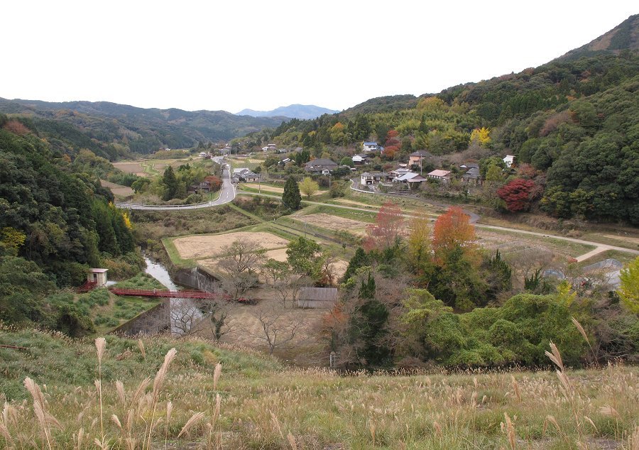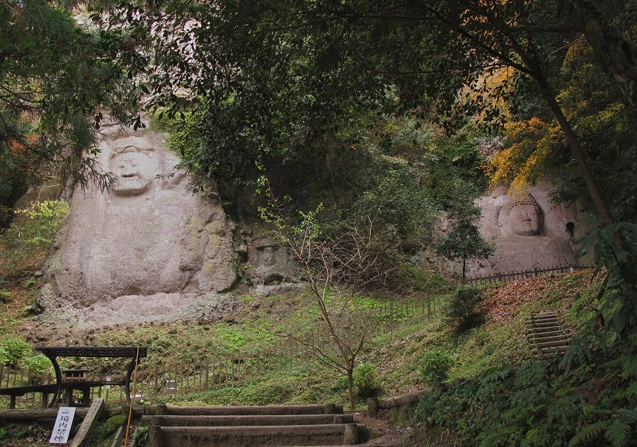 火曜日 (晴れ) 九州の秋3(続き) 今日は晴れているが大陸からの高気圧の端で北からの寒風が吹いている。 花の里や山の別荘地も小雪が舞っているだろうなと思う。 庭で賑やかに咲いていた磯菊や島寒菊、野路菊たちはもう花びらが枯れ始めている。 こんな時はザ ラスト ローゼス オブ サマー (訳詞)の歌を思い出す。 日本ではこの歌は庭の千草となっている。 旅の続き (11月25日) 今日は別府から宇佐市に向かう国道10号線の途中にある杵築市の山鹿(ここには温泉がある)から 県道665号線を東北に向かい国東半島に入っていった。 早速に国東半島特有岩山群が見えて来てなかなか風情がある里山ではある。 走ると最初に熊野磨崖仏があり、見たくなって道を右に曲がり坂を上るとすぐに胎蔵寺がある登山口に着いた。 寺の横から渓流沿いに坂を上り、最後に急な石段があって50m程度あがると摩崖仏が掘られた岩山に出る。 そこは整地されていて前に大岩があり、その石の左右に掘り込まれた大きな像が見える。 それは900年以上経過しているとは思えないような綺麗な彫刻である。 左側には不動明王、右側は大日如来である。 どことなく2像は彫刻の作者が違うような気が私にはする。 ここまで登ってくる人は高齢者が少ない。 インドから日本に仏教が伝来した時代には寺を作る時に修行をメインとしきびしい高地を選んでいたのだ。 近代のお寺は町の中に建てられてお参りもしやすい。 しかし私の好きなお寺はやはり高地の自然に中に建てられたものが好きで、彫刻もお寺の中に丁重に祭られた 仏像では無くて、こうして厳しい環境の中で自然と一体になった仏像が好きなのである。 今も輝きを失っていない熊野摩崖仏を見てそう思っていた。 これを作った先人の知恵に感謝。 熊野摩崖仏 ![]() ![]() 参道を下に見る 入口には鳥居がある 昔は神仏混交で摩崖仏の上部にはお宮がある ![]() 摩崖仏からの下り道は旧道を走ったが昔の里山の生活風情が残っておりなかなか良かった。 道を進むと次に真木大堂が見えここは参詣人も多い。 ここは何回も参詣しているのでパス。 すぐ先を左に折れて農業世界遺産の田染地区に入って見た。 ここは昔ながらの農業が維持されているようで田と民家と山と溜池や寺等が調和していて美しい。 寒さはきびしくなくて冬ものんびりしている感じで椎茸等の栽培にも良いのであろう。 田染荘とその背後の山に朝日観音と夕日観音がある 農地には夜間用の照明がついている 位置図 ![]() また道を県道に戻り進むと富貴寺があるが、ここも何回か見ていたのでまだ進み突き当りを右に折れて しばらく行くと並石ダムがありここにこっとん村と言う道の駅があった。 (グーグルの地図で見る) ここでようやくだご汁が食べられなんとか満足。 ここからのダムを北に見ると国東の山の紅葉が素晴らしい。 前の山並みを鬼城岩峰(並石耶馬とも)と言うらしい。 真ん中の山の頂上はなにか人が大きく口をあけて左手を見せているようで面白い。 口の穴には鬼が住んでいたと言われる。 鬼城岩峰 ![]() 鬼城岩峰の左部分 ここは山の峰歩きがあるようだ ![]() ダムから下の里山を見る ここもやはり南向きの山際に民家が多い ![]() 鬼城岩峰 左側の岩が穴のある岩だがダムの上流の並石地区から見ると穴は見えない ![]() ここから北に行って暗い杉林の中にある仁聞菩薩の墓と五輪塔群を見た。 それから北に行き峠を下りあかねの郷の国見温泉に行った。 ここは午後の3時頃で入湯の客はおらず一人のんびりと北の千燈岳の山並みを眺めながら湯に浸かっていた。 温度は丁度良くて素晴らしかった。 ここは何度か宿泊した事もあり国東の旅には丁度良い宿である。 ここから東北に見える千燈岳は周防灘も見晴るかせて登ってみたい山ではある。 そう言えば昔に近くの不動山に車で登り広々とした国東の北部と周防灘を見た記憶がある。 そのワイドさは素晴らしかった。 それから周防灘の海岸部に出て夕食に魚料理を食べてから、豊後高田に行き昭和の町並みの夜歩き をして帰途についた。 今年はなにかと障害があり、旅に恵まれずに久しぶりに長距離旅行をさせて貰った数日であつた。 高速道路の通行料金も祝日の3割引きでなにか恵まれた感じだった。 参考ページ 国東の他のページ 日記前のページへ 日記次のページへ 日記の最初の目次ページへ 花図鑑ホーム |