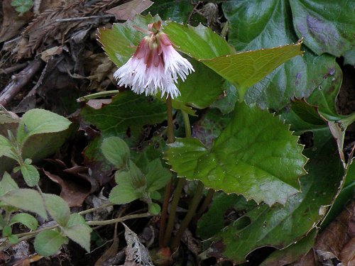 木曜日 (晴れ) 不精者 今朝は晴れて少し風が吹いている。 今日は花の里の草刈りをしようと新しい草刈り機を持参して向かった。 この草刈り機は二つに分離出来て車に積みやすいのだ。 行く道は新緑が満ちて美しい。 所々にフジの紫の花が咲いている。 彼らはうまく木に巻きついて日の当たる場所を占拠して咲いている。 咲いている場所は川や道沿いの急な斜面で人の手が入らないとこである。 私は山の手入れをしていてこんな蔓性の植物はほとんど切って始末している。 可哀そうなのだが歩くと足や手がこのツルに絡まり面倒なのである。 それと今年は三葉空木の白い花が見事に咲いている。 小さな灌木なのであるが目立つのである。 他のガマズミ類はどうも花の元気さが無い年だ。 そう言えばアカシデの花もさっぱり見かけない。 なかなか木の花は年によって変化が激しい。 私が考えるには去年成長が激しくて花を咲かせる余裕が無かったかなと思う。 花の里では通路に生えた雑草を刈っていたが中にはキンポウゲやムラサキ サギゴケ等が綺麗に咲いていて、切るのは可哀そうなので少し残しておいた。 今ここで咲いている花では桜草やムスカリに続いてアジュガや蔓花忍が地面 で賑やかに咲き始めた。 また姫シャガも可愛い薄紫の花を咲かせている。 それとオダマキも日本産と外国産が混じって咲いていて色の変化が面白い。 濃い青色のジャーマンアイリスも咲いている。 また木の下では白い花のエビネが今年は見事に集団で咲き始めた。 彼らは長い年月をかけて繁殖してきたのだ。 この花は盗人には取られない。 そんなに高価ではなく珍しい花ではないのだ。 エビネと桜草 ![]() ここの花壇の中では今雑草が目立つのだが、なかなか取る暇が無い。 どうも私は草取りには持続性が無いのである。 私は不精者かも。 午後は山の別荘地に行き道の整備をしたり(猪除けの為)野草園の通路の 整備をしていた。 ここの通路にも雑草が生え込んでいて、またフキまで沢山と繁殖しているのだ。 気温は13度位で風が吹いているが、ここはうまい具合に北と南に尾根があり そんなに強風では無い。 上着を来ていてたまに焚火に当たる位で丁度良い。 今日もしっかり作業して良い運動になったのである。 ここの野草園では今鈴蘭やシャガ、羅生門葛が満開で美しい。 それと大岩鏡のピンクの花もぼちぼちと咲いている。 大岩鏡 ![]() 木の花では男ヨウゾメや大裏白の木が咲いている位でこちらは何か淋しい。 このあと期待かも。 追加で山の別荘地の上部に大きな芝栗の木があるがこれに5cm程度の丸い 穴があり見ているとキツツキが頭上まで来てこちらを見ていた。 巣なら彼らの繁殖にまずいなと思いここから離れて行った。 アオゲラみたいだったのだが良くわからない。 それと近くに3cm位の小さな丸い穴も数個あった。 こちらはコゲラの巣かなと思ったのだがよくわからない。 どうも野鳥は判別がしにくい。 動いてるものは大変。 やはり花のほうが気楽である。 大きいほうの穴 ![]() 日記前のページへ 日記次のページへ 日記の最初の目次ページへ 花図鑑ホーム |