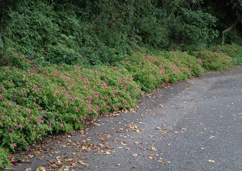 水曜日 (晴れ) 連休の日 連休がめぐって来たのだが、これと言う予定もないので行っていなかった別荘地の整備に3日程出かけた。 土曜日は曇りの日だったので瀬戸内海の江田島にある民家の草刈りに出かけた。 今年はそこに一回も行っていなかったので、さぞ敷地の雑草が茂っているだろうなと思っていた。 行く道では7月の豪雨災害があった呉市を通過するのでどうかなと思っていたのだがやはり混雑していた。 2か所裏道を経由して走ったのだがそれでも時間がかなりかかってしまった。 まあ普段通過しないとこは街の感じが違うので眺めながら走ると少しは楽しい。 なんとか昼過ぎに現地に到着。 曇りの日であったが結構暑い。 おまけに蚊が沢山いて襲ってくるので頭にネットをかぶり草刈りを始めた。 少し動くだけで汗が吹き出して来る。 ようやく夏が終わったと思ったのだが、ここは海傍ではないのでまだ暑さが残っていたのだ。 なんとか道周りと隣接している畑地を草刈りして綺麗にしたところで草臥れてしまった。 まあ丁度今日もいい運動になったなと良いほうに解釈して休憩。 少しパワーが戻ったとこでいつもの帰り道を変え、南にある山(頂上が公園になっているよう)に向かった。 豪雨の影響で何か所か崩れている所があったのだが、さすがに江田島市はしっかりしていて再整備済だった。 道も綺麗に草刈りされていて車は快適に山道を登って行った。 道は誰も走っていなくて気楽であったのだが途中でイノシシ軍団にあった。 6匹程度の子連れの集団だったのだがすぐに彼らは林の中に隠れて行った。 今は昼間なのに彼らはなかなか大胆だとは思った。 あまり狩猟で追われた事が無いのであろう。 彼らに荒される農家は大変だなと思った。 山の頂上は公園化されていて綺麗であった。 しかし周りの木が成長していて見通しがあまりよくない。 少し下った南側に大きな岩がありそこからは南東が良く見渡せる。 その日は曇りなので全体が灰色がかっていたがそれでも眺めは良い。 島の南側で家は無くて岩と松ばかり 前面の島は倉橋島 四国はかすんで見えない ![]() 帰りの下りの道でもまたイノシシ軍団を見た。 いつも走っている西中国山地と違いこちらの瀬戸内海の島の植物は暖地系のもので面白かった。 特に気をひいた花は丸葉萩であった。 普段見ているものよりは可愛くて奇麗だったのでベスト写真にアップしたのだ。 他にはゴンズイの赤い実がきれいだった。 翌日は事務所を少し北に入った所の草刈りをした。 ここもイノシシが地面を掘り返して歩くのも楽ではなかった。 それから最後の休日(敬老の日)は山口県の周防大島に出かけた。 行く道の田園では緑の法面に咲く赤い彼岸花たちが美しかった。 今の時期が見るのも最高だなと思った。 着いた島では海傍の別荘地(丘の林)の整備をしていた。 茂った灌木の枝を切って見通しを良くしていたのだがここも蚊は出てくるし暑くて作業は大変だった。 なんとか作業を済まして、帰りに南側を見てみるとこれは不思議。 道傍にはオシロイバナの赤い花で一杯だった。 去年の秋に道傍の草刈りをしたのが幸いしたのだろう。 中にオシロイバナがあったのは記憶していたのだが。 まあ道傍の雑木も綺麗に切って処分したのも幸いしたようだ。 赤(ピンクぽい)のオシロイバナ ![]() 事務所で咲いているオシロイバナは赤がオレンジぽくて黄色の花もありツートンカラーである。 それで私はこのツートンカラーのオシロイバナをここへ持って行き植えてみようかなと思っている。 19日の今日は久しぶりに山の別荘地(吉和)に出かけた。 面白い事に秋の花は色々と咲いているのだが(萩他)キノコが沢山出ていて見ても楽しかった。 黄色や白や赤や茶など色とりどり。 大小の変化もありこんなキノコの当たり年はなかなか無いのだ。 日記前のページへ 日記次のページへ 日記の最初の目次ページへ 花図鑑ホーム |