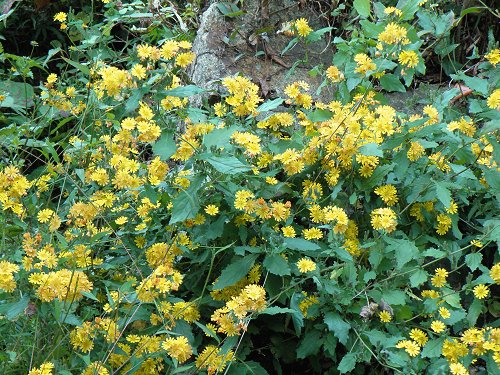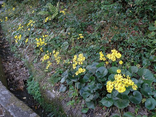 金曜日 (曇り) 一番の紅葉2 このところ紅葉見物が忙しい。 今が秋の盛りであろうか。 田舎で野菜や果物などを買っても季節感があって美味しい。 生シイタケも焼いて食べていた。 最近は松茸は高くて口に入らないのだが椎茸は安くてそれでいて美味しい。 ついアルコールを飲んでしまうのだ。 果物は結構当たりはずれがあるが、今回は小さいリンゴであったがしっかり熟れていて美味しかった。 うちの山の別荘地のキノコはなかなか本番にならず今年はダメである。 こんな年もあるのだろう。 数日前に県北の山へ紅葉を見にいったのだがなかなか素晴らしかった。 どこを走っていてもそれなりに紅葉していた。 行く所、行く所全部であったのだ。 異常気象が紅葉には幸いしたのであった。 災害には閉口したのだが。 雑木林の紅葉 ![]() 公園の中の真っ赤なモミジとドウダンツツジ(眼がくらんだ赤さである) ![]() 昨日は広島県南部の江田島に民家の整備に出かけた。 山口県の周防大島に行きたいのだが例の橋の事故で片側通行となっていて強風でも通行禁止で渡るのも大変。 周防大島の別荘地では今ツワブキの盛りで、見たいのだがやむを得ず江田島に行ったのである。 昨日も現地は暖かくていつも行っている山の別荘地とは大違い。 動くと汗がにじむのだ。 おまけに落ち葉を燃やしていたので余計なのだが。 ここも山の別荘地と同じで畠をイノシシが掘り起こしていてその為山道をふさいで入られなくしていた。 この効果はうまいことあって荒らされていなかったので草刈りは楽であった。 作業が終わって帰り道でツワブキの咲いている場所があり綺麗であった。 やはりツワブキは海岸部に咲き、初冬らしい感じがして見ても気持ちが良い。 代わりにこちらで見られて嬉しかった。 今時分は庭のヒイラギも白い花を咲かせ、おまけに白い雪虫も飛ぶのである。 それと道傍に薬師草も賑やかに黄色の花を満開に咲かせていて綺麗であった。 ツワブキ ヤクシソウ ![]() 今日は山の別荘地に行き道の草刈りをしていた。 こちらはもうほとんど落葉していてモミジ等が一部赤や黄色に輝いていた。 道の落葉は例年の2倍位あり整理に大変。 重なると歩けもしなくなる程である。 しっかり作業して帰りに花の里で入浴していた。 こんな毎日で体調はとても良い。 山と花の里の自然の神様に感謝である。 日記前のページへ 日記次のページへ 日記の最初の目次ページへ 花図鑑ホーム |
