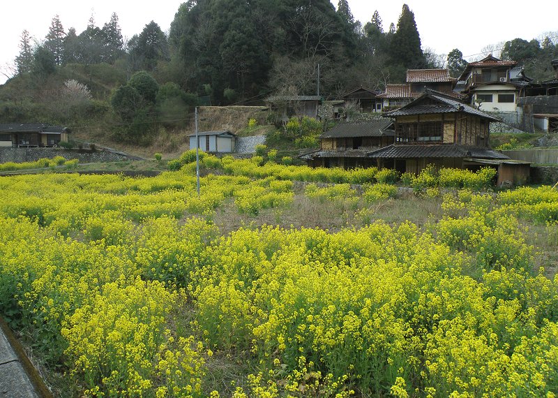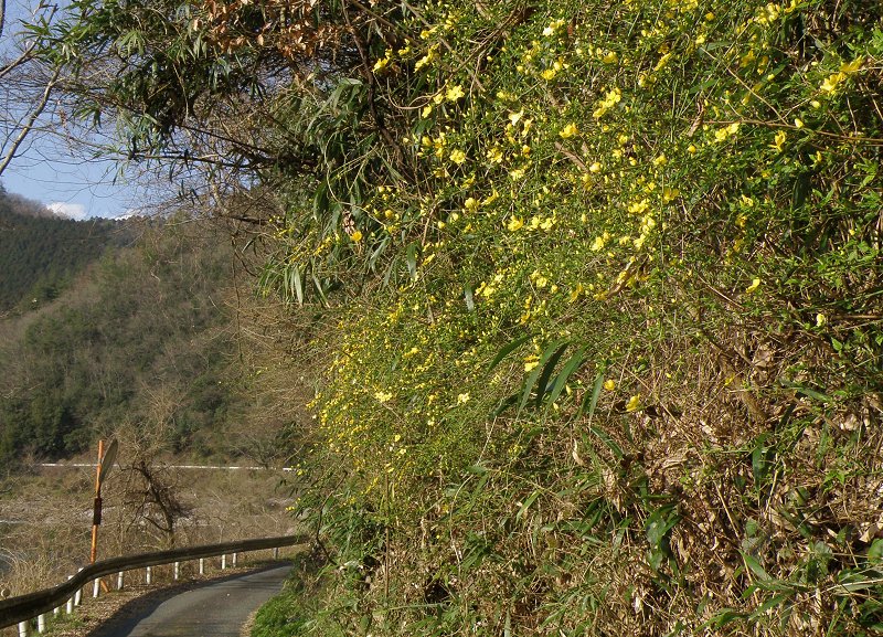 日曜日 (曇り) 里山の春 今日は西からの寒風が吹くとか朝のニュースで言っていた。 花の里や山の別荘地も雪が舞うと寒いから行くのは止めて周防大島に行こうと思った。 今は小雨も時々ちらつくのだが現地の天気予報は昼からは晴れ間もあるとの事。 今朝は早めに支度して高速道路も利用し気楽に向かった。 高速を降りてからは国道は使わずに遠回りは気にせず里山をのんびりと見ながら気楽に走っていた。 途中の渓流には黄色の菜の花が集団で咲いていたり、また綺麗な緑色のクレソンも良く茂っている。 少し前にはこのクレソンを採取し茹でて食べたのであるが美味しかった。 里山の民家周りは庭木や果樹の花が、春が来たとばかりに一度に咲いて美しい。 空の青、緑の田園の中に白、黄、桃、赤と総天然色で咲いているのだ。 白は雪柳やモクレン、花桃。 黄は黄梅の仲間たち、サンシュウユ、銀葉アカシア、満作等。 ピンクは花桃、サクランボ、彼岸桜。 赤は寒緋桜、花桃、シモクレン、椿、ボケ等である。 梅は暖地では咲き終わり、今は花桃や早咲きの桜類が満開で見事である。 彼らは農家等の広い土地に植えられているので木も大き目である。 また山の道周りにはヤシャブシの黄緑の花が満開。 ![]() アセビも常緑の緑の葉の中で白く輝き、日当たりの良い場所で所々咲いている。 農地や荒れ地には菜の花や一部だがレンゲ草も咲いている。 周防大島に渡るとミカン畑が多いので花は少ない。 ミカンの花は5月頃に咲くのである。 しかし良く見ると海辺の山桜が一部開花していた。 今年は特に早い気がする。 こちらの別荘地の山桜はまだ蕾であった。 今日は海辺の笹を切ったり丘の上の雑草を刈っていた。 その丘の上ではもう地面をびっしり覆った草苺が真っ白い花を一面咲かせていた。 他にも食べられる野草の茂みが元気なグリーン色をしていて美味しそうである。 草苺の赤い実が熟れる時が楽しみ。 湾の海は透き通った青い色で素晴らしかった。 帰りも道を変えて里山を走ったのであるが花たちが素晴らしかった。 空家もあり見事に咲いた花たちが人に見て貰えないのは可哀そうとは思った私である。 夕方写した 菜の花 ![]() 追加で3月18日写した 満開の里山の山桜 ![]() 道の斜面に咲いた山吹の花 ![]() 日記前のページへ 日記次のページへ 日記の最初の目次ページへ 花図鑑ホーム |