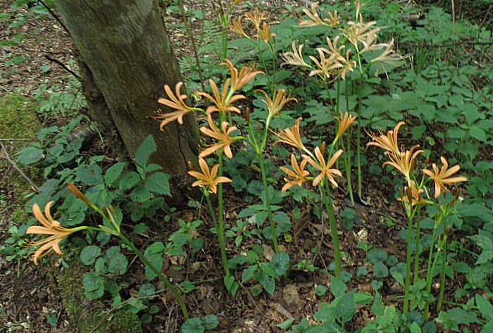 日曜日 (曇り) コロナ対策 コロナの病気もなかなか終わらなくて、まん延するばかり。 特効薬はいかに? で私はいつも山の別荘地に出かけていて、これが私だけの特効薬。 ここでの敵は蚊とアブである。 最近蚊はだいぶ減ってきたのであるがトンボたちが出てくれた為であろうか? それで私は一応、虫よけの帽子をかぶって作業をしている。 今年は気温が25度を越えないのでわりに楽ではあるのだが風が吹かないと少しは暑い。 花の里では夏の花が一斉に開花した。 一番目立つのは大葉ギボウシで白い穂の花を沢山咲かせている。 ここでは雨が適当に降ったのであろう。 湿気の好きな植物である。 それと白い葉で賑やかなハンゲショウも繁殖して拡がり沢山咲いた。 中心の華やかな花はオイランソウ。 白や濃いピンクの花を茎の先に沢山大きく咲かせて名に恥じないのである。 赤とオレンジはクロコスミアである。 この花も環境が合うのか増殖してきた。 黄色の花は花笠菊。 せいが高くてずらり並んで咲く。 紫の花はブットレア。 低木みたいに枝を広げて咲いている。 地面近くで集団で咲くのはアメリカ菊で青い花。 派手さは無いのだがおとなしい咲き方で私の好きな花である。 少ないけどなんとか咲いているのは秋の七草の桔梗と河原撫子。 それと広範囲に咲いているオミナエシである。 オレンジ色のルドベッキアも同じ感じで咲いている。 木ではムクゲの白い花とヤブデマリの赤い実が目立つ。 山の別荘地の野草園ではキツネノカミソリが球根を増やし派手に咲いた。 (大キツネノカミソリかも?) ![]() 他には花が見当たらない。 ここでは道や平地に雑草やフキがえらく元気に茂るのである。 それで草刈りが主な作業。 また大雨で流れた砂利道の整備や、側溝にたまった落ち葉の取り除きもある。 この土は腐葉土化しているので花畑に入れてやると都合が良いのであるが。 なかなかそこまで手の回らない私である。 それで私は山の野草園を、ここの土地を販売した人たちに解放しようと思っているのだ。 帰りに近くのダムの渓流沿いを車から見てみると黄ツリフネとウバユリが咲いていた。 所変われば品変わるであった。 日記前のページへ 日記次のページへ 日記の最初の目次ページへ 花図鑑ホーム |
