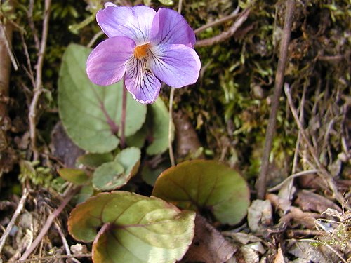 3〜5月咲き 山から里まであらゆる所に繁殖 紫ではないピンクがかった花 花径3cm程度で普通の大きさ 花中央のメシベのオレンジ色が目立つ 茎を伸ばし斜め横に株を張る 葉はハート型で径2〜3.5cm 葉脈が赤いタチツボスミレ 花のうしろ側の少し反り返った丸い壷状の形(距・きょ)に注意! 草丈30cmまで 戻る 花図鑑TOPに戻る