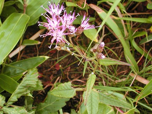 9〜10月咲き 花径1cm大で薊に似た咲き方をする 山の日当たりの良い草地に生えている 笹原の中に咲いていた とげの様なピンク色の花で触れると痛そうな感じがする 草丈1m以下 地味な感じがする花 戻る 花図鑑TOPに戻る