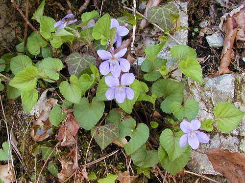 下の画像は谷川の岩場に生える渓流立壷菫