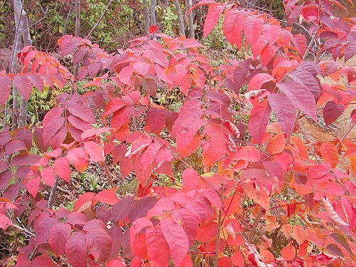 5〜6月頃開花 ライトグリーンの垂れる粟粒状の房花 集合花全体は12cm位 葉は秋早くから紅葉する 色はオレンジ赤で綺麗 葉の茎も赤くなる 山地に生え、似た木では海岸地方に同科のハゼの木がある 高さ8mまでの落葉中木 雌雄異株 子供のころ良く山でハゼにかぶれていたが、今でもうるし科には悩ませられる 葉の拡大 戻る 花図鑑TOPに戻る