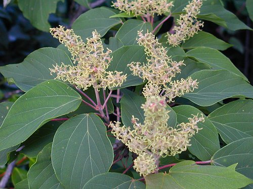 春には赤い芽が目立つ 7〜8月開花 10月頃黄葉する