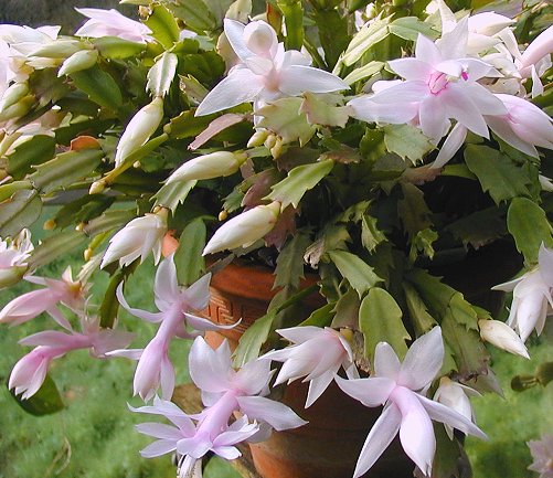 11〜12月開花 半日影地で栽培する さし芽で殖える 垂れ下がるので吊り鉢などが良い 春は充分と水や肥料を与え、夏以後は控えると花芽が良くつく 1〜2年で植替え、時期は5月 冬は暖かい室内で保護する 放任栽培でも良く育つ オレンジ、赤、白等花色は多彩 似ている花でブラジル産のカニバサボテンがある(葉状茎がトゲばる) 戻る 花図鑑TOPに戻る