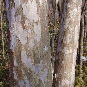 幹は赤灰色で表皮が一部剥がれ落ちて白い大きな斑点が出来る。つるつるしてすべりやすい。材は硬く重い。床柱にも良く利用される。