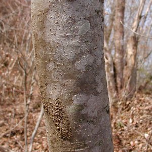 幹は暗灰色に白い斑点が出る。粒状の小突起が全体に出る。