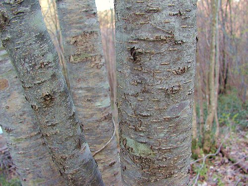 山桜と同じように横に模様があるが色は灰褐色で明らかに違う。