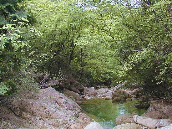西中国山地の広葉樹林に降る雨はゆっくりと大地にしみ込み、湧き出た清水は清流となり下流の町や市にオアシスの恩恵をもたらす。