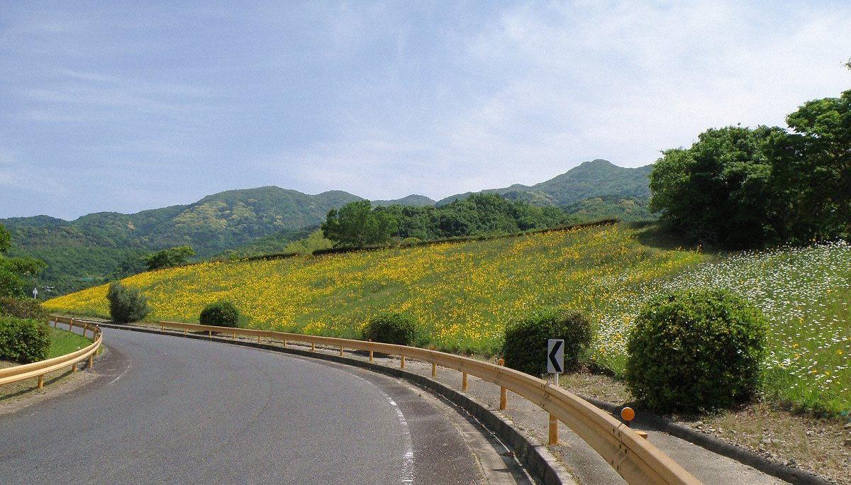 5月の末ごろ、堤防の斜面に花が一斉に咲き始める ここは見事な緑地となっていて来訪者も多い
