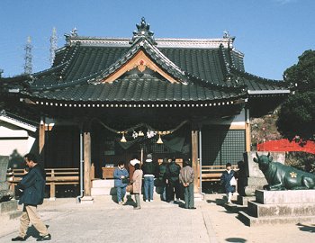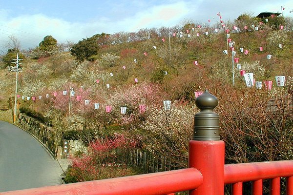 | 2月の末ようやく寒風も収まり、冠天満宮に春が訪れる。 茶店もできて、参詣人が絶えない。 今年の運勢はいかにと御神籤(おみくじ)を引く。 小山イツパイに咲いた紅白の梅の香りがあたり一面ただよい、 艶やかさは黒沢明監督の( 夢 )にでる桃の花のよう |