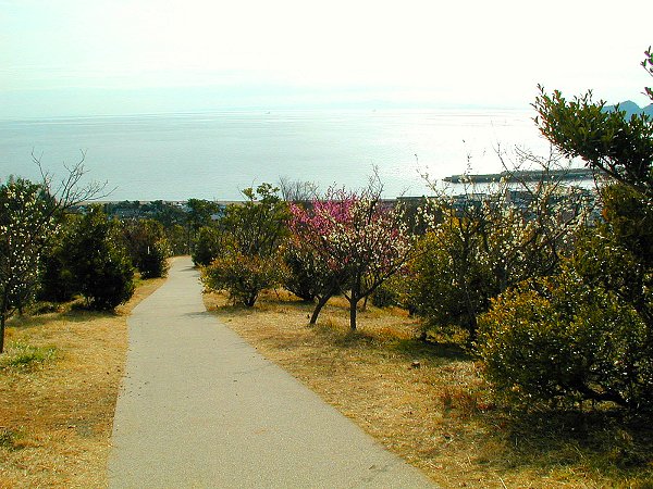 黒い瓦屋根の町並みを見おろす丘。 南は瀬戸内海で光市の名のごとく 光いっぱい。 2018年の春の開花を見る 隣の柳井市にある余田臥龍梅 コバルトラインより内海の展望 |