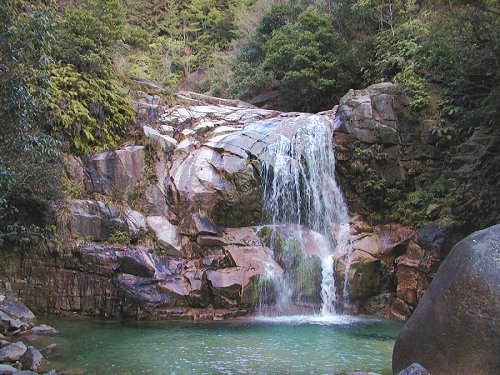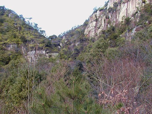 JR大竹市の玖波駅の西北に山紫水明の地があり、自然公園となっている。ここの中央をながれている川を大膳川といい北の傘山を源に急流となり岩場を瀬戸内海に流れ下っている。 中心にある滝が錦龍の滝で四季を通じて散策など楽しめ市民憩いの場となっている。 春は桜や新緑やつつじ、夏は清流で子供たちが川泳ぎに興じ、秋はもみじや櫨の紅葉、冬は松や常緑樹の濃い緑の自然いっぱいの場所である。 たち上がる岩場と松 付近の詳細地図 (傘山、行者山、忠四郎山)