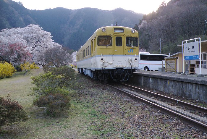 | 安野花の駅公園(広島県安芸大田町) 三段峡へ行く可部線の駅であったが 鉄道が廃止されて駅だけは保存されて残り、公園となっている。 主に桜が植えてあり春には賑わう。駅には駅長の猫がいる。 位置図 |