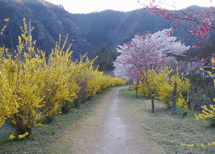 上の写真の左側は太田川で流域は民家等もありなかなか風情がある。 車などで道をさか登り県境まで行くドライブも楽しい。県境には見どころも多い。 下は公園の花の盛りの写真で桜とレンギョウが綺麗。 桜は早咲きの種類もあるので長く鑑賞できる。 また少し前には花桃の開花がありこれも楽しめるのだ。 2021年2月末、あれでもと行くと紅梅(早咲きの紅桜?)が見事に咲いていた。 |