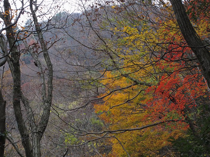 そこから道を右に曲がり林道を登ると峠になり、そこから左に曲がり尾根を登ると平家岳頂上に至る。