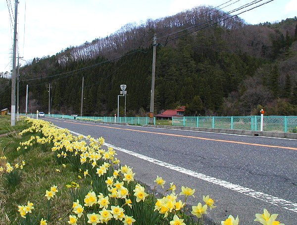 吉和村の4月は道沿いが水仙の花でいっぱい。
